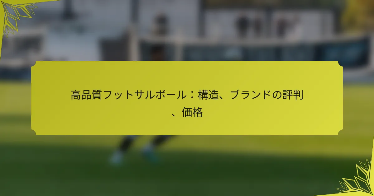 高品質のフットサルボールは、パフォーマンスと耐久性を向上させる特定の材料と構造技術で設計されています。著名なブランドは、耐久性があり信頼性の高い製品を提供することで評判を築いており、プロ選手によってしばしば支持されています。これらのプレミアムボールの価格は幅広く、通常は30ドルから100ドル以上まで変動し、ブランドの評判や構造の品質などの要因に影響されます。 Key sections in the article: Toggle 高品質のフットサルボールの主な構造特徴は何ですか? フットサルボールの構造に使用される材料 パフォーマンスに影響を与えるデザイン特徴 縫製技術と耐久性への影響 ブレダーの種類とプレイアビリティへの影響 フットサルボール製造における品質管理プロセス 高品質のフットサルボールを製造するブランドはどれですか? 主要なフットサルボールブランドの概要 顧客レビューに基づくブランドの評判 プロ選手やチームからの支持 市場での存在感とブランドの信頼性 高品質のフットサルボールの価格はどのように変動しますか? 異なる品質レベルの価格帯 […]