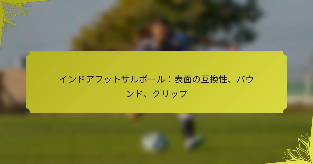 インドアフットサルボールは、さまざまな表面で最適に機能するように設計されており、表面の互換性がその効果において重要な役割を果たします。バウンスやグリップなどの主要な要素は、プレイヤーのコントロールやゲームプレイのダイナミクスに大きく影響し、プレイヤーが特定のプレイ環境に適したボールを選ぶことが不可欠です。一定のバウンスと優れたグリップを提供するボールは、全体的なパフォーマンスを向上させ、速いペースの試合中にパス、シュート、コントロールを改善します。 Key sections in the article: Toggle インドアフットサルボールの表面互換性とは? フットサルプレイに適した表面の種類 ボールのパフォーマンスに対する表面素材の影響 ハードウッドコートに推奨されるフットサルボール 人工芝に推奨されるフットサルボール 表面互換性がゲームプレイに与える影響 バウンスはインドアフットサルボールにどのように影響しますか? フットサルボールにおけるバウンス特性の定義 バウンスの高さと一貫性に影響を与える要因 異なるブランド間のバウンスパフォーマンスの比較 バウンスがプレイヤーのコントロールとゲームプレイに与える影響 インドアフットサルボールのグリップ特性とは? グリップ向上に使用される素材 […]