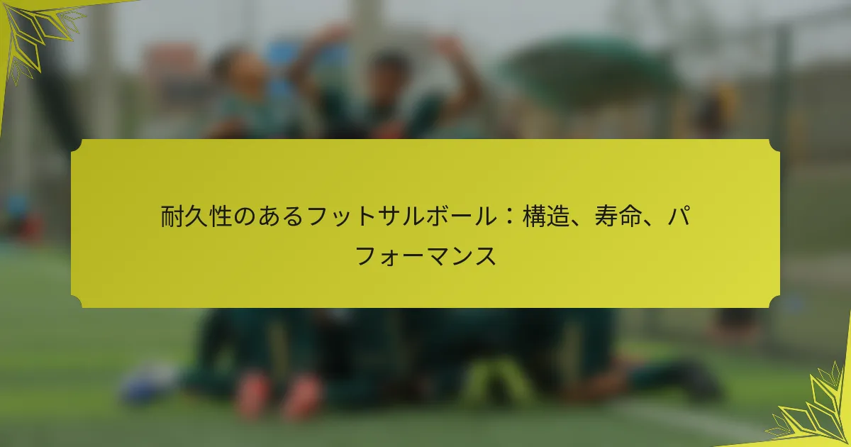 耐久性のあるフットサルボールは、コートでの寿命とパフォーマンスを向上させる特定の構造的特徴を持って設計されています。高品質の材料と高度な縫製技術を利用することで、これらのボールは厳しいプレイに耐えながら、最適なバウンス、グリップ、コントロールを確保するように作られています。適切なケアを行えば、6か月から2年の間持続することができ、レクリエーションプレイヤーと競技プレイヤーの両方にとって信頼できる選択肢となります。 Key sections in the article: Toggle 耐久性のあるフットサルボールの主な構造的特徴は何ですか? フットサルボールの構造に使用される材料 耐久性のための縫製技術 寿命を延ばすデザイン特徴 構造がボールのパフォーマンスに与える影響 一般的なブランドとその構造基準 耐久性のあるフットサルボールは通常どのくらい持ちますか? フットサルボールの寿命に影響を与える要因 ボールの寿命を延ばすためのケアのヒント 異なるフットサルボールブランドの比較寿命 耐久性に影響を与える使用条件 摩耗の兆候とフットサルボールを交換するタイミング フットサルボールのパフォーマンスは構造によってどのように異なりますか? […]