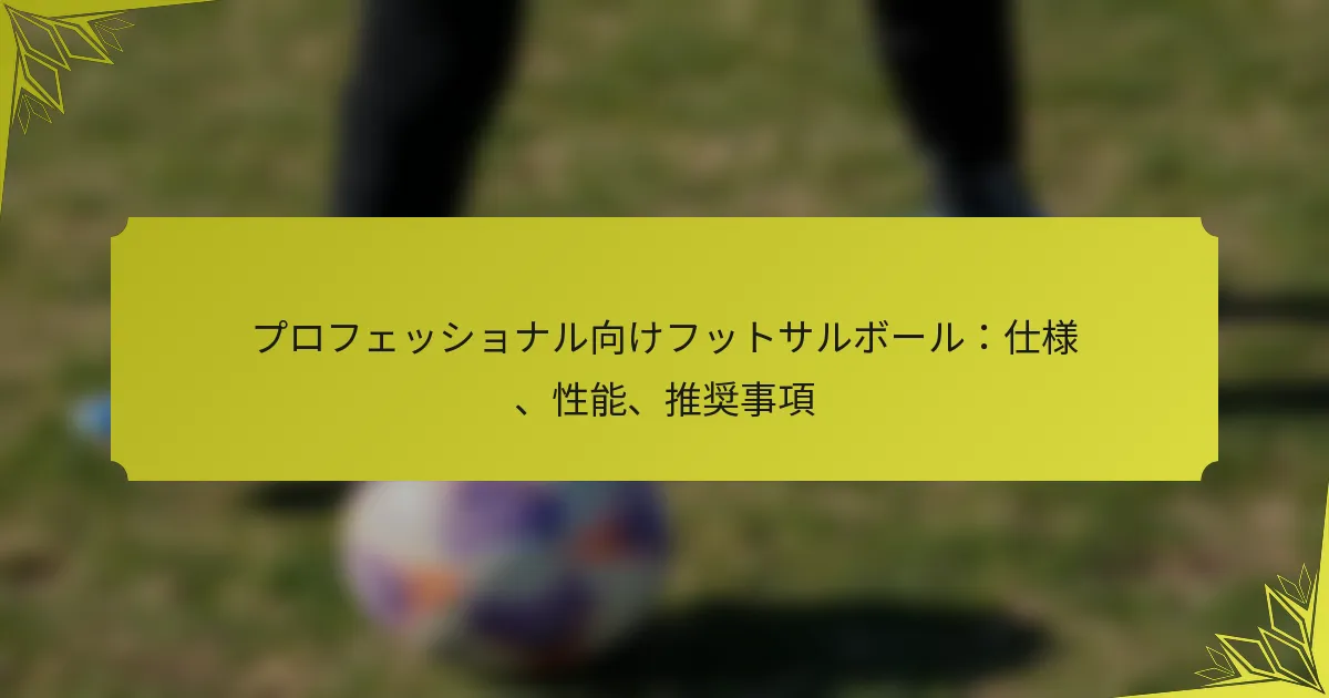 プロフェッショナルなフットサルボールは、ゲームプレイとパフォーマンスを向上させるための厳しい仕様を満たすように精密に作られています。これらのボールは、さまざまなプレイ条件での最適なパフォーマンスを確保するために、特定のサイズ、重量、素材基準で設計されています。真剣なプレイヤーにとって、高品質のフットサルボールを選ぶことは、コートでの最高の体験を得るために重要です。 Key sections in the article: Toggle プロフェッショナルなフットサルボールの主な仕様は何ですか? プロフェッショナルなフットサルボールのサイズ要件 最適なパフォーマンスのための重量仕様 素材構成とプレイへの影響 製造方法:縫製と接着 ゲームプレイを向上させるデザイン機能 プロフェッショナルなフットサルボールは異なる条件でどのようにパフォーマンスを発揮しますか? 屋内プレイと屋外プレイのパフォーマンスの違い ボールコントロールがゲームプレイに与える影響 さまざまなプレイ表面に対する耐久性の指標 グリップとバウンドの特性 プロフェッショナルに推奨されるフットサルボールはどれですか? プロフェッショナル向けのトップ評価のフットサルボールブランド […]
