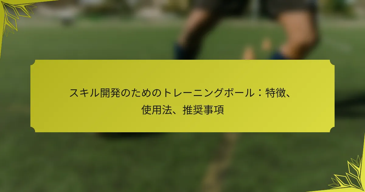 スキル開発のために設計されたトレーニングボールは、さまざまなスポーツにおけるアスリートのパフォーマンスを向上させるための重要なツールです。これらの専門的なボールは、ドリブル、パス、シュートなどの特定のスキルを向上させるために調整された独自の特性を備えています。ターゲットを絞ったドリルを適切なトレーニングボールと組み合わせることで、アスリートはパフォーマンスと全体的なスキルレベルを大幅に向上させることができます。 スキル開発のためのトレーニングボールの主な特徴は何ですか? スキル開発のために設計されたトレーニングボールは、さまざまなスポーツにおけるアスリートのパフォーマンスを向上させるための専門的な機器です。スポーツに応じて、ドリブル、パス、シュートなどの特定のスキルを向上させるために調整された独自の特徴を備えています。 サイズと重量の仕様 トレーニングボールはサイズと重量が大きく異なり、効果的なスキル開発にとって重要です。たとえば、標準的なサッカートレーニングボールは通常、周囲68〜70 cm、重量は約410〜450グラムです。一方、バスケットボールは直径29.5インチ、重量は約567グラムです。 トレーニングボールを選ぶ際は、使用者の年齢層とスキルレベルを考慮してください。若年層向けのトレーニングボールは、通常、小さくて軽量で、扱いやすくなっています。たとえば、サイズ3のサッカーボールは若い選手に適しており、大人はサイズ5を使用するべきです。 素材の種類とその利点 トレーニングボールに使用される素材は、そのパフォーマンスと耐久性に大きな影響を与えます。一般的な素材には、合成皮革、ゴム、フォームがあります。合成皮革は耐久性があり、プロのボールの感触を模倣できるため、好まれることが多いです。一方、ゴムは耐摩耗性があるため、屋外トレーニングに一般的に使用されます。 フォームボールは軽量で初心者に安全であり、練習中の怪我のリスクを減少させます。各素材にはそれぞれの利点があるため、適切な素材の選択はトレーニング環境や開発する特定のスキルに依存します。 異なるスポーツのためのデザインのバリエーション トレーニングボールは、さまざまなスポーツのユニークな要求に応えるように設計されています。たとえば、サッカートレーニングボールは、グリップとコントロールを向上させるためにテクスチャーのある表面を持っている場合がありますが、バレーボールは、プレイ中の取り扱いや安全性を向上させるために軽量で柔らかく設計されています。 さらに、一部のトレーニングボールは、筋力と協調性を向上させるために重さを持つデザインを特徴としています。たとえば、重いサッカーボールは、選手がより強いキックと優れたボールコントロールを発展させるのに役立ちます。これらのデザインのバリエーションを理解することは、効果的なスキル開発のために適切なボールを選択するために重要です。 耐久性とパフォーマンス指標 耐久性はトレーニングボールを選ぶ際の重要な要素であり、厳しい練習セッションに耐える必要があります。高品質のトレーニングボールは、摩耗抵抗や水分保持のテストを受けており、時間の経過とともにパフォーマンスを維持することが保証されています。長持ちし、信頼性のあるボールを確保するために、確立されたパフォーマンス基準を満たすボールを探してください。 バウンスの高さや飛行の安定性などのパフォーマンス指標も重要です。たとえば、よく作られたバスケットボールは、一貫したバウンスと飛行経路を持っており、選手が効果的にシュートを練習できるようにします。トレーニングボールの状態を定期的に確認し、これらのパフォーマンス基準を満たしていることを確認してください。 安全機能と基準 トレーニングボールを使用する際の安全性は特に重要であり、特に若いアスリートにとっては重要です。多くのトレーニングボールは、練習中の怪我のリスクを最小限に抑えるために柔らかい外部素材で設計されています。サッカーの国際サッカー評議会(IFAB)やさまざまなスポーツ機器の米国試験材料協会(ASTM)などの安全規制に準拠したボールを探してください。 さらに、一部のトレーニングボールには、空気保持技術のような機能が装備されており、空気が抜けるのを防ぎ、一貫したパフォーマンスを確保します。スキル開発セッション中にアスリートを保護するために、トレーニングボールを選ぶ際は常に安全機能を優先してください。 トレーニングボールをスキル開発に効果的に使用するには? […]