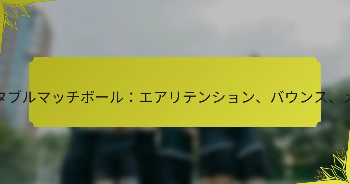 マッチボールは、そのサイズ、重量、材料、デザインによって特徴付けられます。これらは、グリップとコントロールを向上させるために特定のパターンやテクスチャーを持ち、プレイ中の一貫性を確保するために特定の圧力とバウンス基準を満たす必要があります。