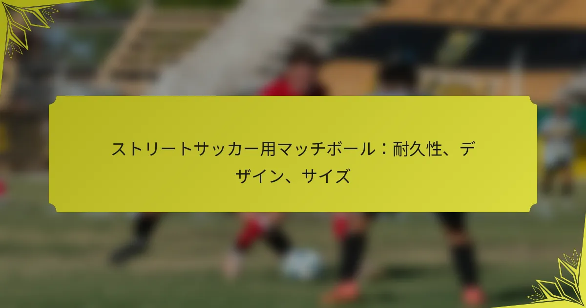 ストリートサッカーの試合用ボールは、都市でのプレイの厳しさに耐えるように特別に設計されており、その耐久性は材料と製造技術によって形作られています。サイズや美的要素を含むデザイン要素は、ストリートでのコントロールと全体的なパフォーマンスを向上させる上で重要な役割を果たします。通常、サイズは3、4、5があり、これらのボールはさまざまな年齢層やスキルレベルに対応しており、すべてのプレイヤーに楽しい体験を提供します。 Key sections in the article: Toggle ストリートサッカーの試合用ボールの耐久性を決定する要因は何ですか? 使用される材料とその耐久性への影響 ストリートサッカーボールの耐久性に関するテスト基準 異なるプレイ条件における一般的な摩耗問題 人気ブランド間の耐久性の比較 耐久性パフォーマンスに関するユーザーレビュー ストリートサッカーの試合用ボールのデザインはパフォーマンスにどのように影響しますか? 美的要素とその視認性への影響 ブランドとプレイヤーの認識への影響 プレイアビリティを向上させるための機能的デザイン要素 ストリートサッカーボールデザインのトレンド ストリートサッカーの試合用ボールの標準サイズは何ですか? サイズ分類とそれに対応する年齢層 […]